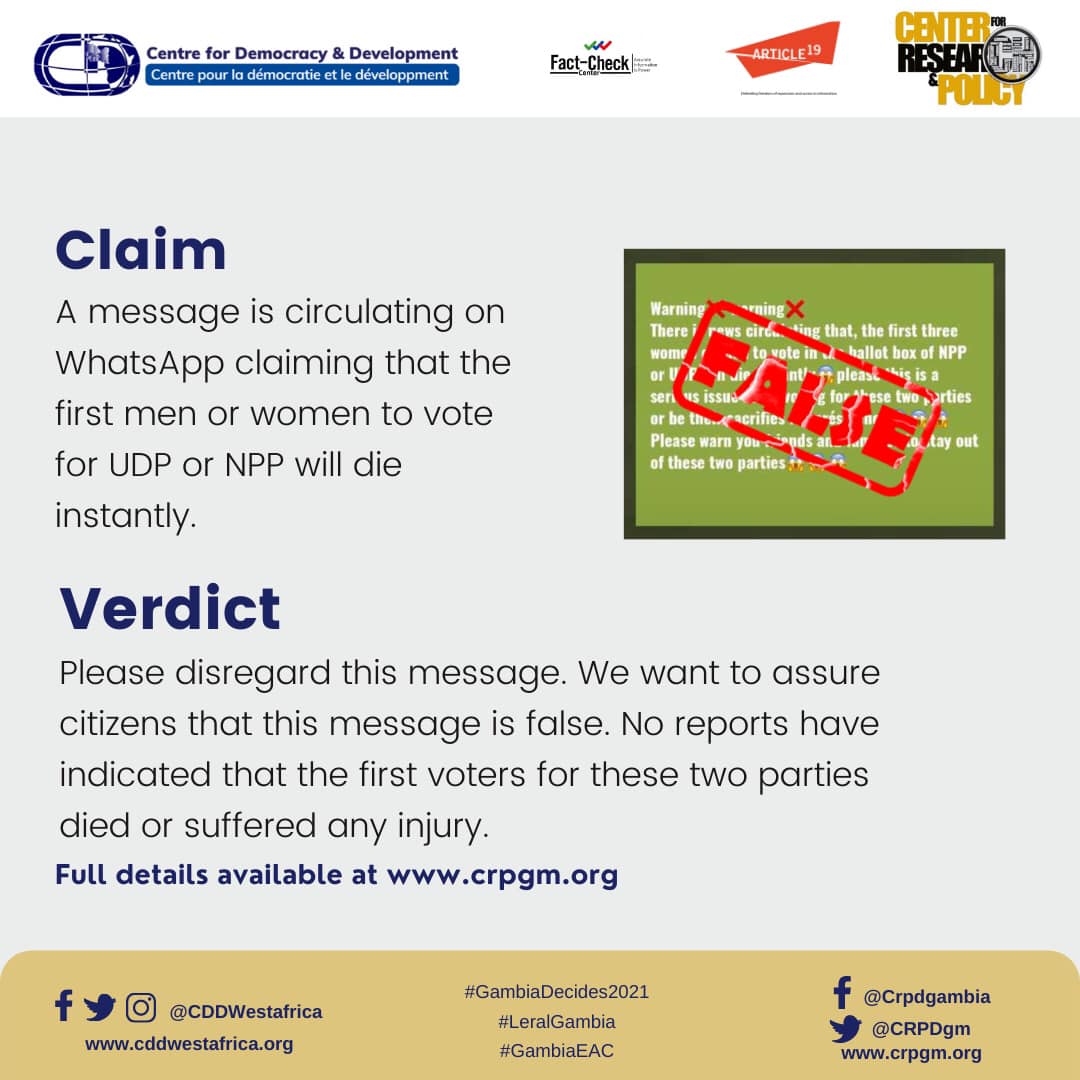 No reports have indicated that the first voters for these two parties died or suffered any injury.Article 19 West Africa Centre for Democracy and Development, West Africa